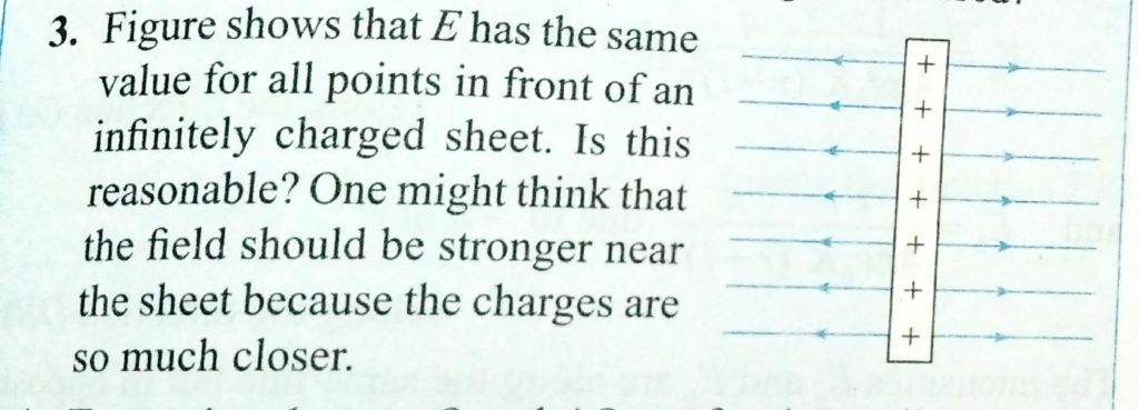 Figure shows that E has the same value for all points in front of an infinetly charged sheet . Is this reasonable ? One might think that the field should be stronger near the sheet because the charges are so much closer. . calculate the chrage that should be placed at the centre of the ring such that the electric field becomes zero at a point on the axis of the ring at distant R from the centre of the ring. A ring of radius R has charge -Q distributed uniformly over it October 29, 2020 Category: Uncategorised (JEE Advanced Physics by BM Sharma + GMP Solutions) , Facebook Messenger WhatsApp Share this:TwitterFacebook Related