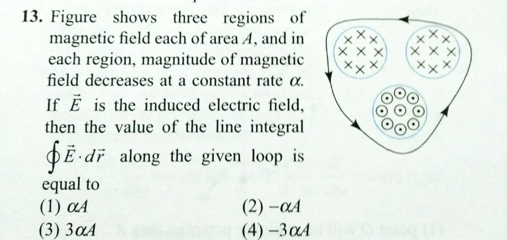 Figure. shows three regions of magnetic field each of area A, and in each rigion, magnitude of mqagnetic field decreases rate α. If E→ is the induced electric field, then the value of the line ∮E .dr along the given loop is equal to and in each rigion Figure. shows three regions of magnetic field each of area A magnitude of mqagnetic field decreases rate α. If E→ is the induced electric field then the value of the line ∮E .dr along the given loop is equal to October 19, 2020 Category: Uncategorised (JEE Advanced Physics by BM Sharma + GMP Solutions) , Facebook Messenger WhatsApp Share this:TwitterFacebook Related
