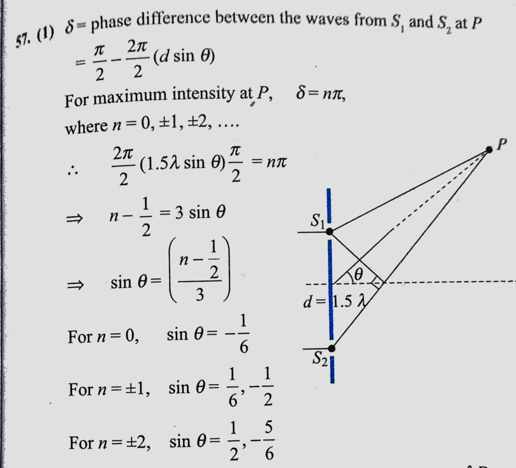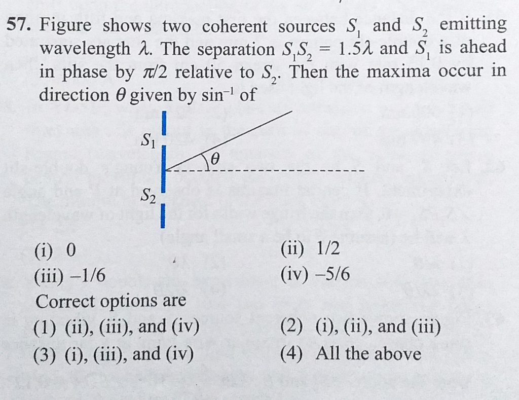 Figure shows two coherent sources S1 and S2 emitting wavelength lemda. The separation S1S2 = 1.5 lemda and S1 is ahead in phase by pie/2 relative to S2. Then the maxima occur in Figure shows two coherent sources S1 and S2 emitting wavelength lemda. The separation S1S2 = 1.5 lemda and S1 is ahead in phase by pie/2 relative to S2. Then the maxima occur in October 10, 2020 Category: Uncategorised (JEE Advanced Physics by BM Sharma + GMP Solutions) , Facebook Messenger WhatsApp Share this:TwitterFacebook Related