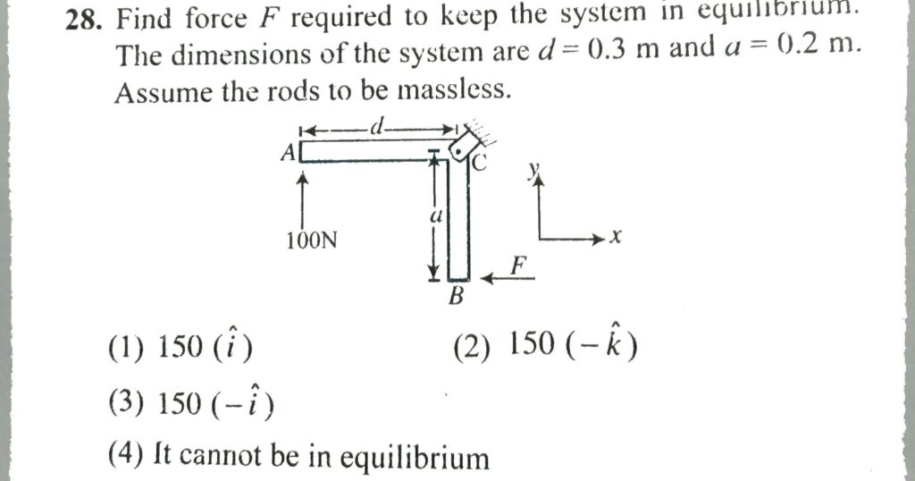 Find force F required to keep the system in equilibrium . The dimensions of the system are d = 0.3 m and a = 0.2 m. Assume the rods to be massless. Find force F required to keep the system in equilibrium . The dimensions of the system are d = 0.3 m and a = 0.2 m. Assume the rods to be massless. September 26, 2020 Category: Uncategorised (JEE Advanced Physics by BM Sharma + GMP Solutions) , Facebook Messenger WhatsApp Share this:TwitterFacebook Related