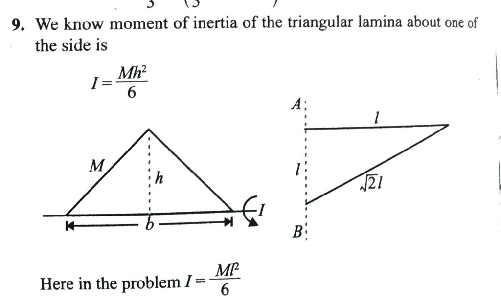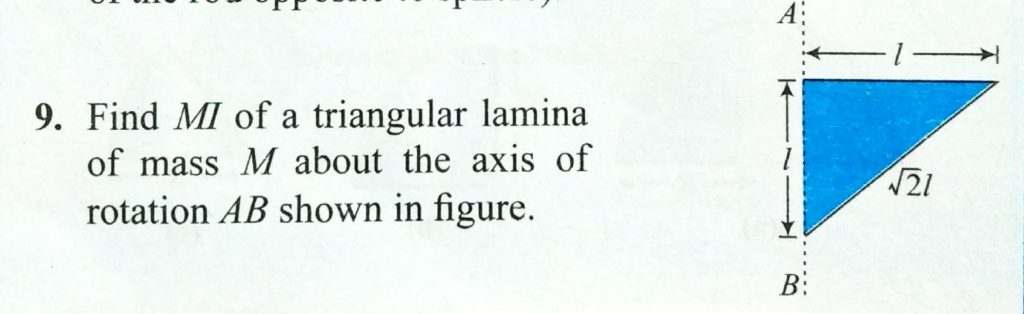 Find MI of a triangular lamina of mass M about the axis of rotation AB shown in Fig. Find MI of a triangular lamina of mass M about the axis of rotation AB shown in Fig. September 25, 2020 Category: Uncategorised (JEE Advanced Physics by BM Sharma + GMP Solutions) , Facebook Messenger WhatsApp Share this:TwitterFacebook Related