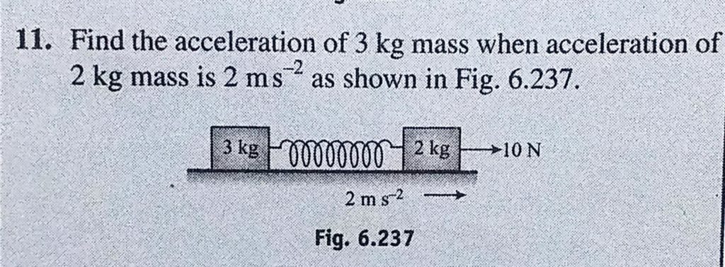 Find the acceleration of 3 kg mass when acceleration of 2 kg mass is 2 m/s^2 as shown in Fig. 6.237. Find the acceleration of 3 kg mass when acceleration of 2 kg mass is 2 m/s^2 as shown in Fig. 6.237. September 29, 2020 Category: Uncategorised (JEE Advanced Physics by BM Sharma + GMP Solutions) , Facebook Messenger WhatsApp Share this:TwitterFacebook Related