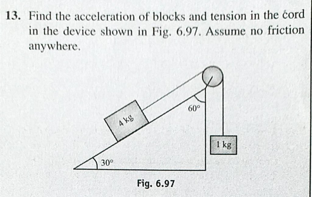 Find the acceleration of blocks and tension in the cord in the device shown in Fig. 6.97. Assume no friction anywhere. Find the acceleration of blocks and tension in the cord in the device shown in Fig. 6.97. Assume no friction anywhere. September 25, 2020 Category: Uncategorised (JEE Advanced Physics by BM Sharma + GMP Solutions) , Facebook Messenger WhatsApp Share this:TwitterFacebook Related