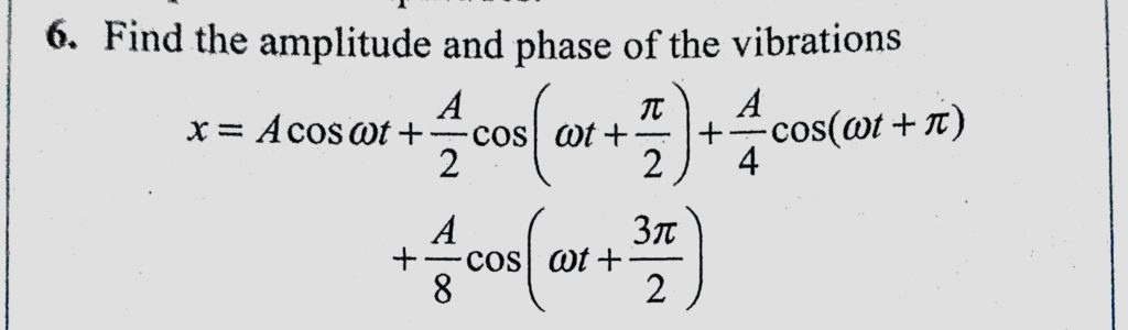 Find the amplitude and phase of the vibrations x = A cos omega t + A/2 cos (omega t + pie/2) + A/4 cos (omega t + pie) + A/8 cos (omega t + 3 pie/2) Find the amplitude and phase of the vibrations x = A cos omega t + A/2 cos (omega t + pie/2) + A/4 cos (omega t + pie) + A/8 cos (omega t + 3 pie/2) October 30, 2020 Category: Uncategorised (JEE Advanced Physics by BM Sharma + GMP Solutions) , Facebook Messenger WhatsApp Share this:TwitterFacebook Related