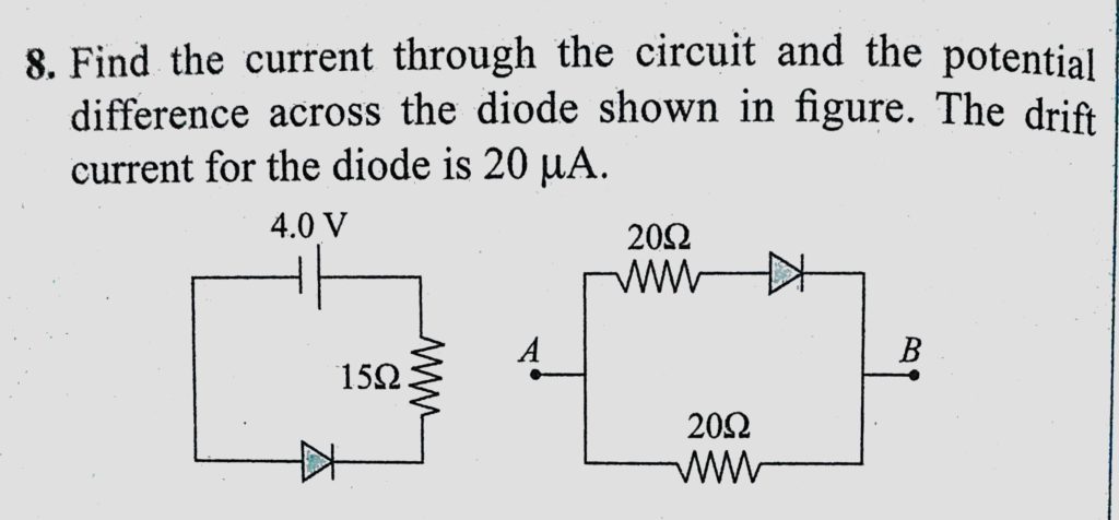 Find the current through the circuit and the potential difference across the diode shown in figure. The drift current for the diode is 20 micro A. Find the current through the circuit and the potential difference across the diode shown in figure. The drift current for the diode is 20 micro A. October 20, 2020 Category: Uncategorised (JEE Advanced Physics by BM Sharma + GMP Solutions) , Facebook Messenger WhatsApp Share this:TwitterFacebook Related