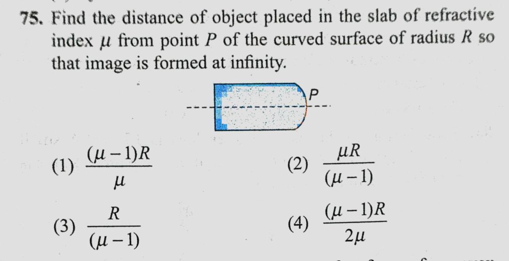 Find the distance of object placed in the slab of refractive index mu from point P of the curved surface of radius R so that image is formed at infinity. Find the distance of object placed in the slab of refractive index mu from point P of the curved surface of radius R so that image is formed at infinity. October 8, 2020 Category: Uncategorised (JEE Advanced Physics by BM Sharma + GMP Solutions) , Facebook Messenger WhatsApp Share this:TwitterFacebook Related