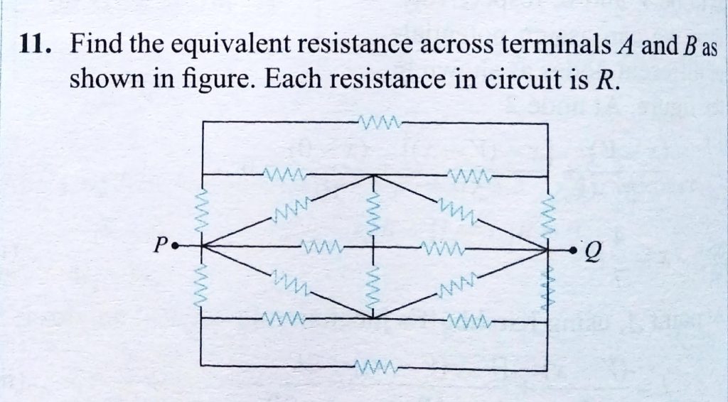 Find the equivalent resistance across terminals A and B as shown in figure. Each resistance in circuit is R. Find the equivalent resistance across terminals A and B as shown in figure. Each resistance in circuit is R. November 11, 2020 Category: Uncategorised (JEE Advanced Physics by BM Sharma + GMP Solutions) , Facebook Messenger WhatsApp Share this:TwitterFacebook Related