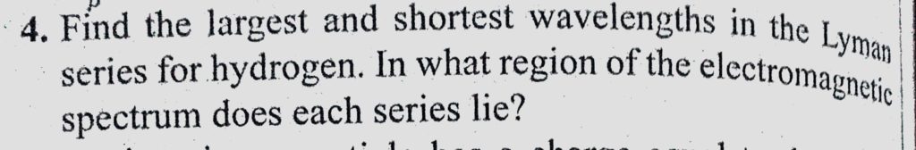 Find the largest and shortest wavelengths in the Lyman series for hydrogen. In what region of the electromagnetic spectrum does each series lie? Find the largest and shortest wavelengths in the Lyman series for hydrogen. In what region of the electromagnetic spectrum does each series lie? October 15, 2020 Category: Uncategorised (JEE Advanced Physics by BM Sharma + GMP Solutions) , Facebook Messenger WhatsApp Share this:TwitterFacebook Related