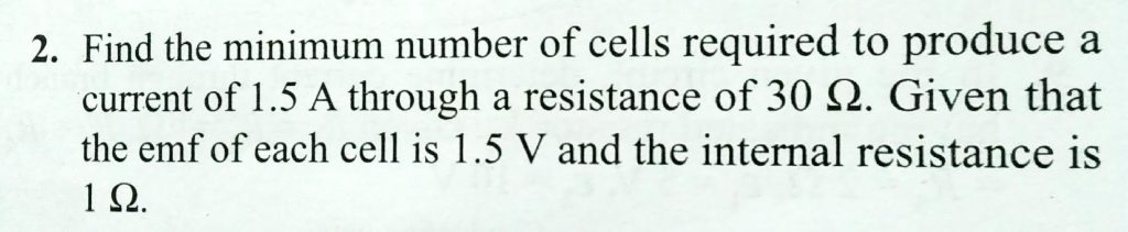 Find the minimum number of cells required to produce a current of 1.5 A through a resistance of 30 ohm . Given that the emf of each cell is 1.5 V and the internal resistance is 1 ohm. Find the minimum number of cells required to produce a current of 1.5 A through a resistance of 30 ohm . Given that the emf of each cell is 1.5 V and the internal resistance is 1 ohm. November 11, 2020 Category: Uncategorised (JEE Advanced Physics by BM Sharma + GMP Solutions) , Facebook Messenger WhatsApp Share this:TwitterFacebook Related