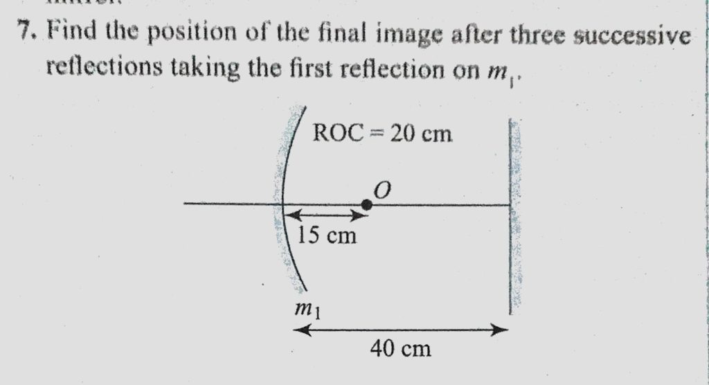 Find the position of the final image after three successive reflections taking the first reflection on m1. Find the position of the final image after three successive reflections taking the first reflection on m1. October 5, 2020 Category: Uncategorised (JEE Advanced Physics by BM Sharma + GMP Solutions) , Facebook Messenger WhatsApp Share this:TwitterFacebook Related