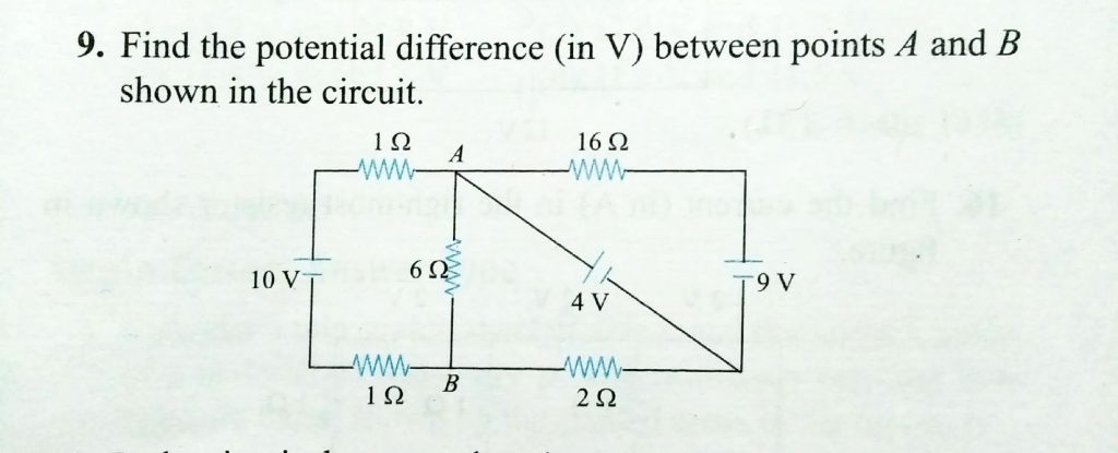 Find the potential difference ( in V ) between points A and B shown in the circuit . Find the potential difference ( in V ) between points A and B shown in the circuit . November 12, 2020 Category: Uncategorised (JEE Advanced Physics by BM Sharma + GMP Solutions) , Facebook Messenger WhatsApp Share this:TwitterFacebook Related