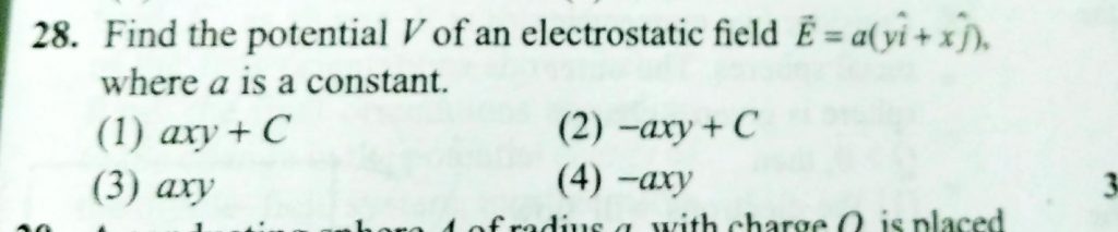 Find the potential V of an electrostatic field E = a ( y i + x j ) . where a is a constant . Find the potential V of an electrostatic field E = a ( y i + x j ) . where a is a constant . November 5, 2020 Category: Uncategorised (JEE Advanced Physics by BM Sharma + GMP Solutions) , Facebook Messenger WhatsApp Share this:TwitterFacebook Related