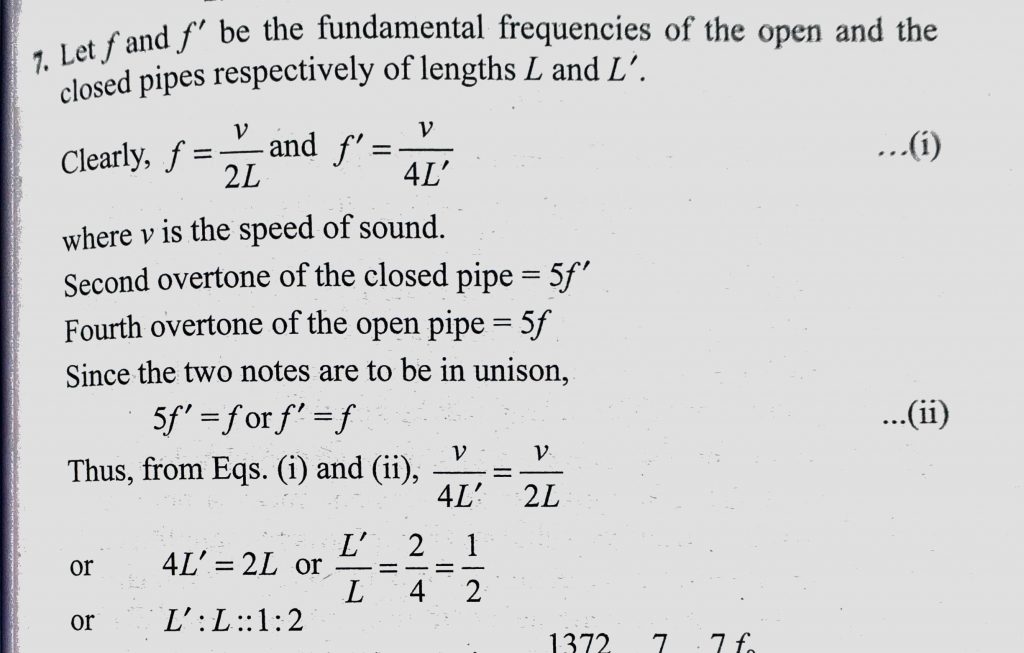 Find the ratio of length of a closed pipe to that of the open pipe in order that the second overtone of the former is in unison with fourth overtone of the latter. Find the ratio of length of a closed pipe to that of the open pipe in order that the second overtone of the former is in unison with fourth overtone of the latter. November 5, 2020 Category: Uncategorised (JEE Advanced Physics by BM Sharma + GMP Solutions) , Facebook Messenger WhatsApp Share this:TwitterFacebook Related