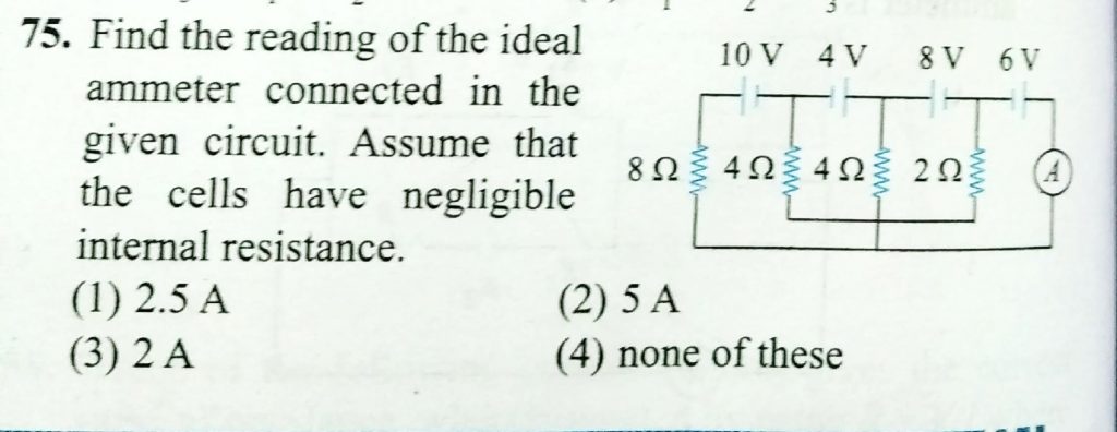 Find the reading of the ideal ammeter connected in the given circuit . Assume that the cells have negligible internal resistance. Find the reading of the ideal ammeter connected in the given circuit . Assume that the cells have negligible internal resistance. November 15, 2020 Category: Uncategorised (JEE Advanced Physics by BM Sharma + GMP Solutions) , Facebook Messenger WhatsApp Share this:TwitterFacebook Related