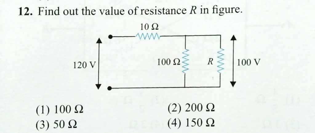 Find the value of resistance R in figure. (1) 100 ohm (2) 200 ohm (3) 50 ohm (4) 150 ohm Find the value of resistance R in figure. (1) 100 ohm (2) 200 ohm (3) 50 ohm (4) 150 ohm November 11, 2020 Category: Uncategorised (JEE Advanced Physics by BM Sharma + GMP Solutions) , Facebook Messenger WhatsApp Share this:TwitterFacebook Related