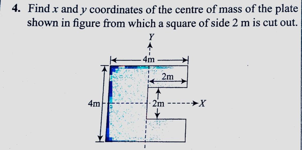 Find x and y coordinates of the centre of mass of the plate shown in figure from which a square of side 2 m is cut out. Find x and y coordinates of the centre of mass of the plate shown in figure from which a square of side 2 m is cut out. September 20, 2020 Category: Uncategorised (JEE Advanced Physics by BM Sharma + GMP Solutions) , Facebook Messenger WhatsApp Share this:TwitterFacebook Related