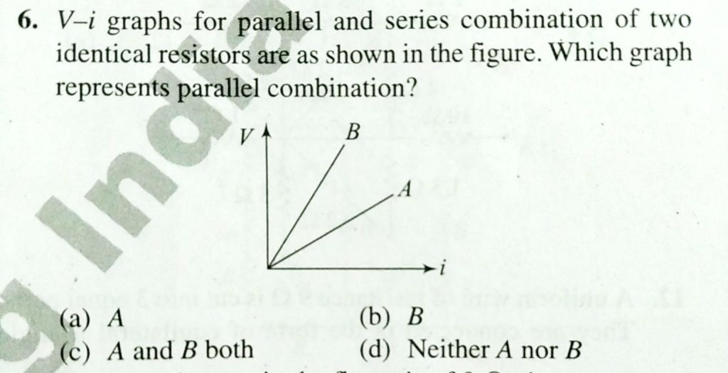 V- i graphs foe parallel and series combination of two identical resistors are as shown in the figure. Which graph represents parallel combination? V- i graphs foe parallel and series combination of two identical resistors are as shown in the figure. Which graph represents parallel combination? September 19, 2020 Category: Uncategorised (JEE Advanced Physics by BM Sharma + GMP Solutions) , Facebook Messenger WhatsApp Share this:TwitterFacebook Related