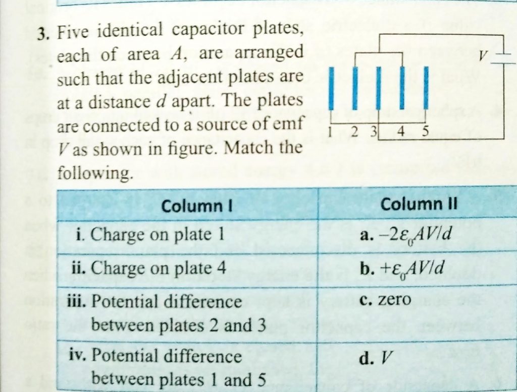 Five identical capacitor plates each of area A , are arranged such that the adjacent plates are at a distance d apart. The plates are connected to a source of emf V as shows in figure. Match the following. are arranged such that the adjacent plates are at a distance d apart. The plates are connected to a source of emf V as shows in figure. Match the following. Five identical capacitor plates each of area A November 8, 2020 Category: Uncategorised (JEE Advanced Physics by BM Sharma + GMP Solutions) , Facebook Messenger WhatsApp Share this:TwitterFacebook Related
