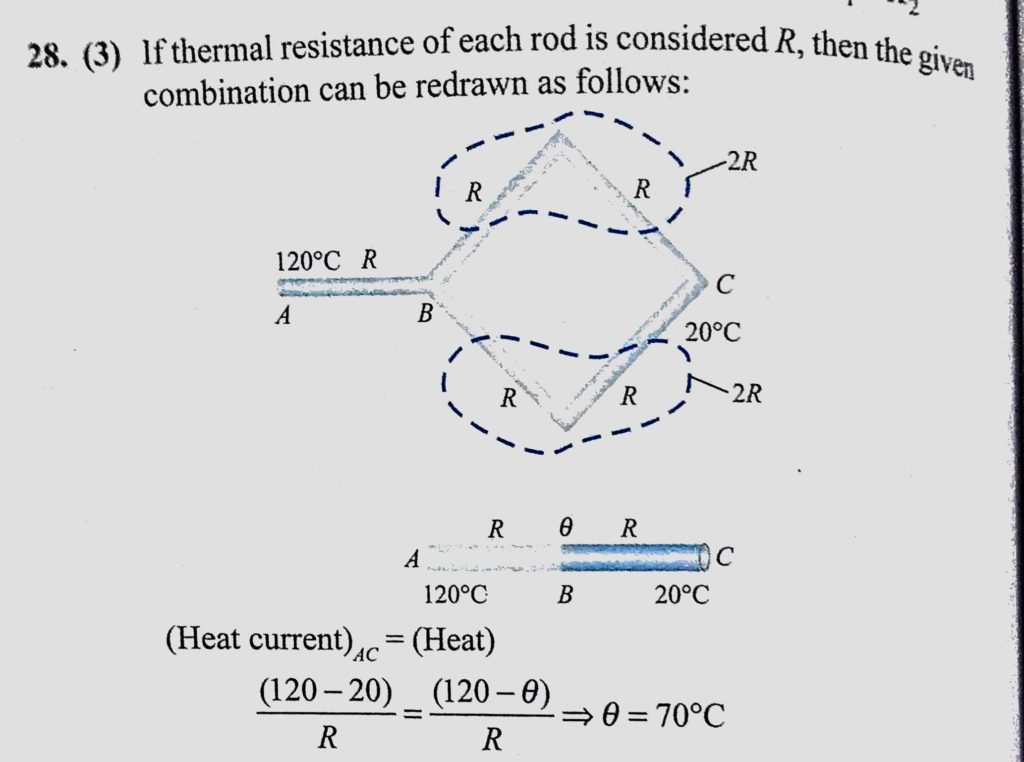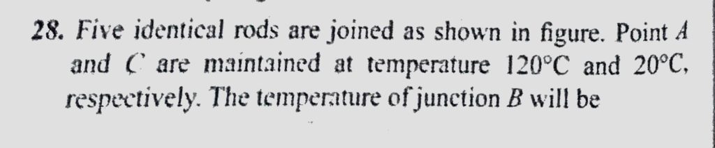 Five identical rods are joined as shown in figure. Point A and C are maintained at temperature 120 C and 20 C respectively. The temperature of junction B will be Five identical rods are joined as shown in figure. Point A and C are maintained at temperature 120 C and 20 C respectively. The temperature of junction B will be October 25, 2020 Category: Uncategorised (JEE Advanced Physics by BM Sharma + GMP Solutions) , Facebook Messenger WhatsApp Share this:TwitterFacebook Related