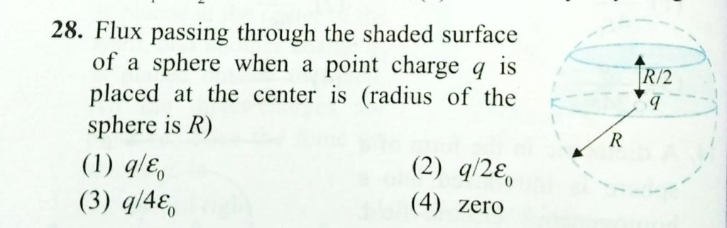 Flux passing through the shaded surface of a sphere when a point charge q is placed at the centre is ( radius of the sphere is R ) Flux passing through the shaded surface of a sphere when a point charge q is placed at the centre is ( radius of the sphere is R ) October 31, 2020 Category: Uncategorised (JEE Advanced Physics by BM Sharma + GMP Solutions) , Facebook Messenger WhatsApp Share this:TwitterFacebook Related