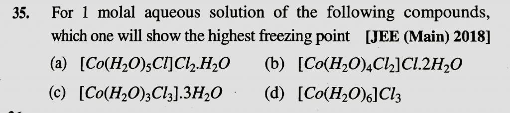 For 1 molal aqueous solution of the following compounds, which one will show the highest freezing point For 1 molal aqueous solution of the following compounds which one will show the highest freezing point December 14, 2020 Category: Uncategorised (JEE Advanced Physics by BM Sharma + GMP Solutions) , Facebook Messenger WhatsApp Share this:TwitterFacebook Related