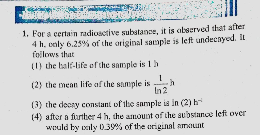For a certain radioactive substance, it is observed that after 4 h, only 6.25% of the original sample is left undecayed. It follow that For a certain radioactive substance it is observed that after 4 h only 6.25% of the original sample is left undecayed. It follow that October 18, 2020 Category: Uncategorised (JEE Advanced Physics by BM Sharma + GMP Solutions) , Facebook Messenger WhatsApp Share this:TwitterFacebook Related