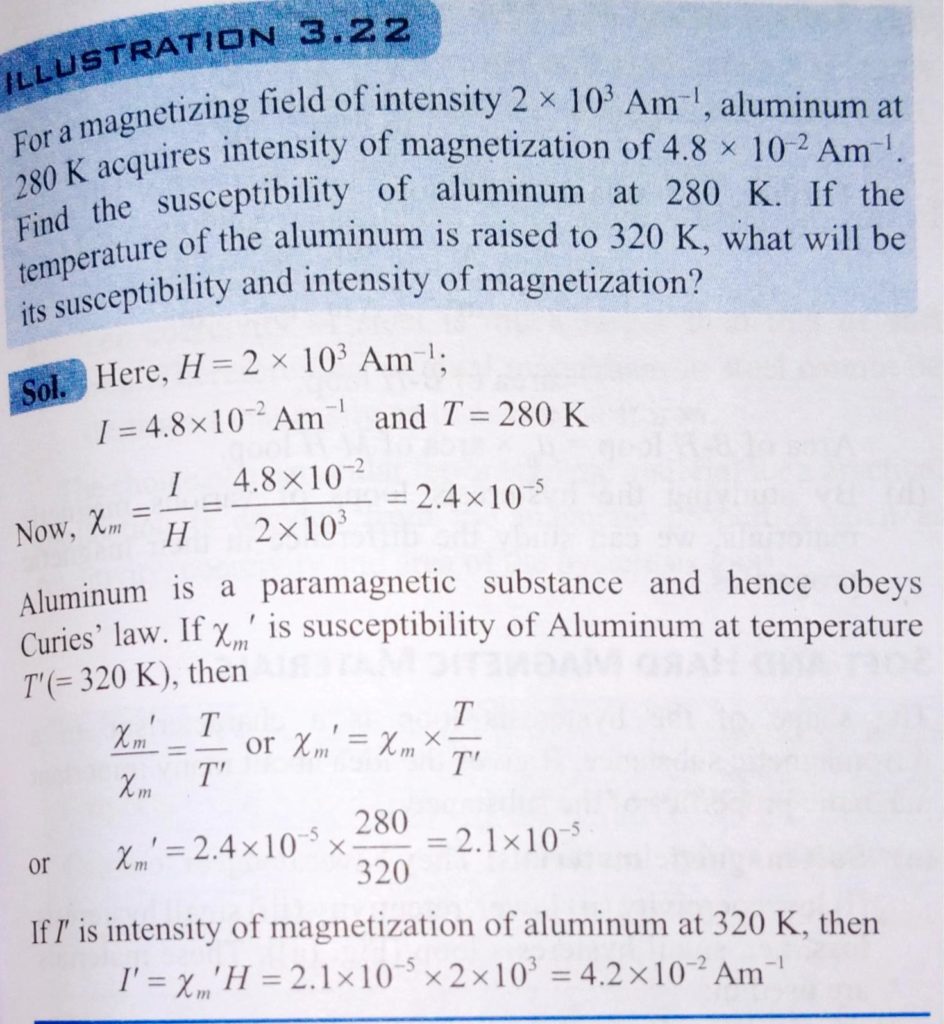 For a magnetizing field of intensity 2×10^3 A/m, aluminium at 280 K acquires intensity of magnetization of 4⋅8×10^−2 Am^−1. Find the susceptibility of aluminium at 280K. If the temperature of the metal is raised to 320 K, what will be its susceptibility and intensity of magnetization?