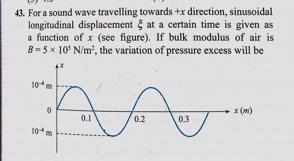 For a sound wave travelling towards +x direction, sinusoidal longitudinal displacement e at a certain time is given as a function of x (see figure). If bulk modulus of air is For a sound wave travelling towards +x direction sinusoidal longitudinal displacement e at a certain time is given as a function of x (see figure). If bulk modulus of air is November 7, 2020 Category: Uncategorised (JEE Advanced Physics by BM Sharma + GMP Solutions) , Facebook Messenger WhatsApp Share this:TwitterFacebook Related