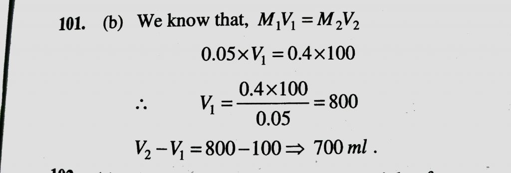 For converting a solution if 100 ml KCL of 0.4 M concentration into a solution of KCL 0.05 M concentration. The quantity of water added is For converting a solution if 100 ml KCL of 0.4 M concentration into a solution of KCL 0.05 M concentration. The quantity of water added is December 11, 2020 Category: Uncategorised (JEE Advanced Physics by BM Sharma + GMP Solutions) , Facebook Messenger WhatsApp Share this:TwitterFacebook Related