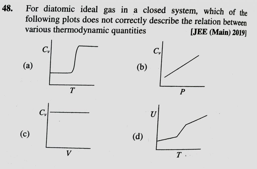 For diatomic ideal gas in a cloised system , which of the following polts dose not correctly describe the relation between various thermodynamics quantities For diatomic ideal gas in a cloised system which of the following polts dose not correctly describe the relation between various thermodynamics quantities February 12, 2021 Category: Uncategorised (JEE Advanced Physics by BM Sharma + GMP Solutions) , Facebook Messenger WhatsApp Share this:TwitterFacebook Related