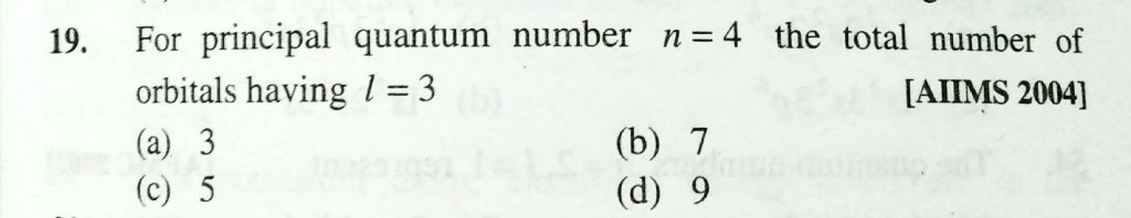 For principal quantum number n = 4 the total number of orbitals having l = 3 For principal quantum number n = 4 the total number of orbitals having l = 3 November 28, 2020 Category: Uncategorised (JEE Advanced Physics by BM Sharma + GMP Solutions) , Facebook Messenger WhatsApp Share this:TwitterFacebook Related