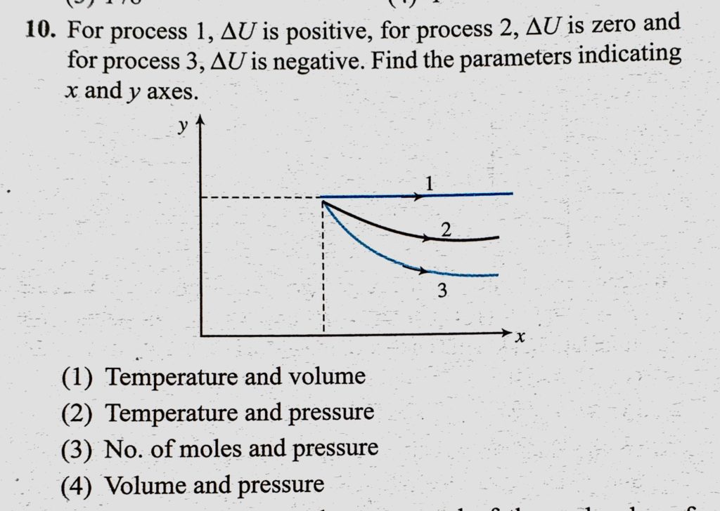 For process 1, delta U is positive, for process 2 , delta U is zero and for process 3, delta U is negative. Find the parameters indicating x and y axes. delta U is negative. Find the parameters indicating x and y axes. delta U is positive delta U is zero and for process 3 For process 1 for process 2 October 27, 2020 Category: Uncategorised (JEE Advanced Physics by BM Sharma + GMP Solutions) , Facebook Messenger WhatsApp Share this:TwitterFacebook Related