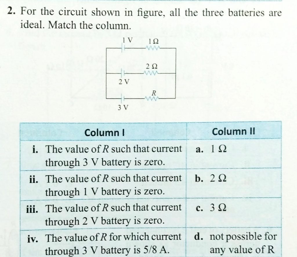 For the circuit shown, all the three batteries are ideal. Match the column. all the three batteries are ideal. Match the column. For the circuit shown November 12, 2020 Category: Uncategorised (JEE Advanced Physics by BM Sharma + GMP Solutions) , Facebook Messenger WhatsApp Share this:TwitterFacebook Related