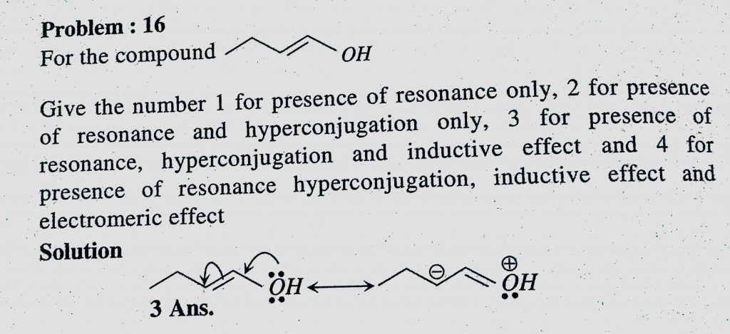 For the compound Give the number 1 for presence of resonance only, 2 for presence of resonance and hyperconjugation only, 3 for presence of resonance, hyperconjugation and inductive effect and 4 for presence of resonance hyperconjugation, inductive effect and electronic effect