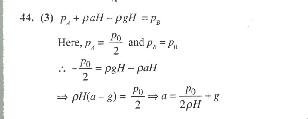 For the L-shaped vessel shown in the figure, determine the value of acceleration a so that pressure at point A becomes equal to p0/2? (p0 is the atmospheric pressure) determine the value of acceleration a so that pressure at point A becomes equal to p0/2? (p0 is the atmospheric pressure) For the L-shaped vessel shown in the figure October 7, 2020 Category: Uncategorised (JEE Advanced Physics by BM Sharma + GMP Solutions) , Facebook Messenger WhatsApp Share this:TwitterFacebook Related