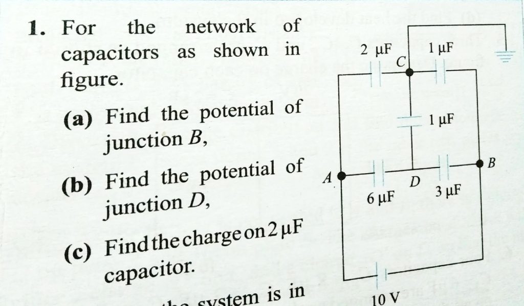For the network of capacitors as shown in figure. (a) Find the potential of junction B, ( b) Find the potential of junction D, (c) Find the charge on 2 muF capacitor . ( b) Find the potential of junction D (c) Find the charge on 2 muF capacitor . For the network of capacitors as shown in figure. (a) Find the potential of junction B November 7, 2020 Category: Uncategorised (JEE Advanced Physics by BM Sharma + GMP Solutions) , Facebook Messenger WhatsApp Share this:TwitterFacebook Related