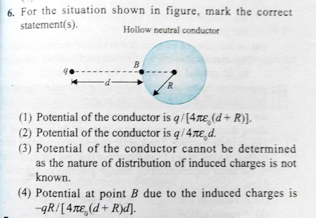 For the situation shown in figure, mark the correct statements. (1) potential of the conductor is q/[4 piee0 (d+R)] For the situation shown in figure mark the correct statements. (1) potential of the conductor is q/[4 piee0 (d+R)] November 6, 2020 Category: Uncategorised (JEE Advanced Physics by BM Sharma + GMP Solutions) , Facebook Messenger WhatsApp Share this:TwitterFacebook Related