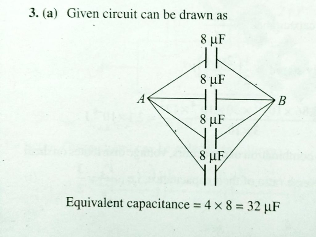 Four condensers are joined as shown in the adjoining figure. The capacity of each is 8 muF. The equivalent capacity between the points A and B will be Four condensers are joined as shown in the adjoining figure. The capacity of each is 8 muF. The equivalent capacity between the points A and B will be September 18, 2020 Category: Uncategorised (JEE Advanced Physics by BM Sharma + GMP Solutions) , Facebook Messenger WhatsApp Share this:TwitterFacebook Related