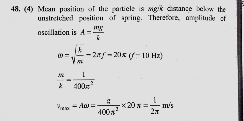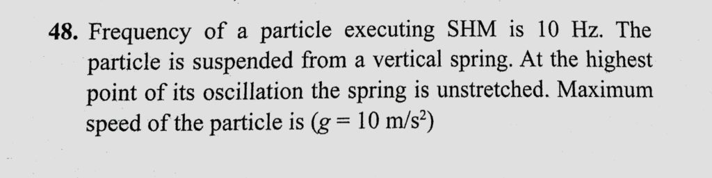 Frequency of a particle executing SHM is 10 Hz. The particle is suspended from a vertical spring. At the highest point of its oscillation the spring is unstretched. Maximum speed Frequency of a particle executing SHM is 10 Hz. The particle is suspended from a vertical spring. At the highest point of its oscillation the spring is unstretched. Maximum speed October 31, 2020 Category: Uncategorised (JEE Advanced Physics by BM Sharma + GMP Solutions) , Facebook Messenger WhatsApp Share this:TwitterFacebook Related