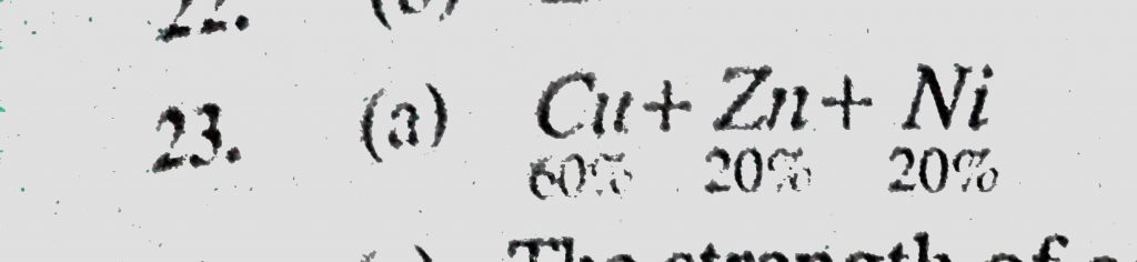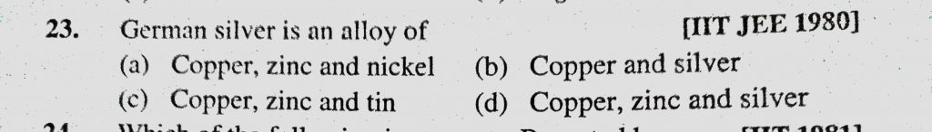 German silver is an alloy of (a) Copper, zinc and nickel (b) Copper and silver (c) Copper , Zinc and tin German silver is an alloy of (a) Copper zinc and nickel (b) Copper and silver (c) Copper Zinc and tin December 2, 2020 Category: Uncategorised (JEE Advanced Physics by BM Sharma + GMP Solutions) , Facebook Messenger WhatsApp Share this:TwitterFacebook Related