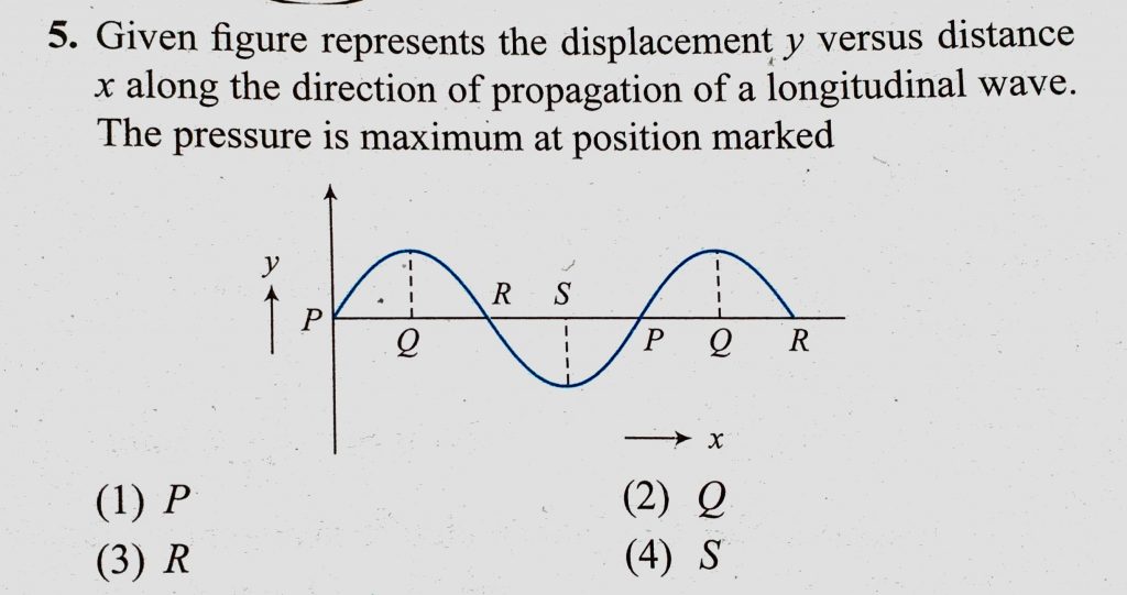 Given figure represents the displacement y versus distance x along the direction of propagation of a longitudinal wave. The pressure is maximum at position marked Given figure represents the displacement y versus distance x along the direction of propagation of a longitudinal wave. The pressure is maximum at position marked November 7, 2020 Category: Uncategorised (JEE Advanced Physics by BM Sharma + GMP Solutions) , Facebook Messenger WhatsApp Share this:TwitterFacebook Related