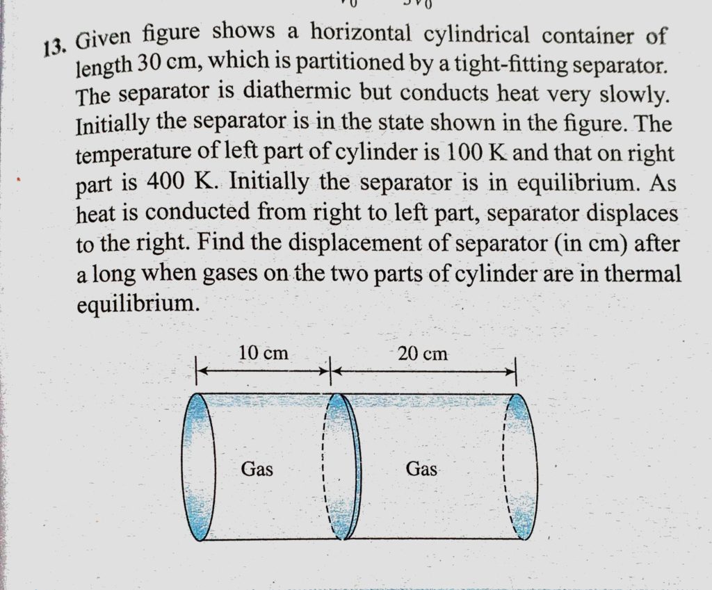 Given figure shows a horizontal cylinderical container of length 30 cm, which is partitioned by a tight-fitting separator. The separator is diathermic but conducts heat very slowly. Given figure shows a horizontal cylinderical container of length 30 cm which is partitioned by a tight-fitting separator. The separator is diathermic but conducts heat very slowly. October 28, 2020 Category: Uncategorised (JEE Advanced Physics by BM Sharma + GMP Solutions) , Facebook Messenger WhatsApp Share this:TwitterFacebook Related