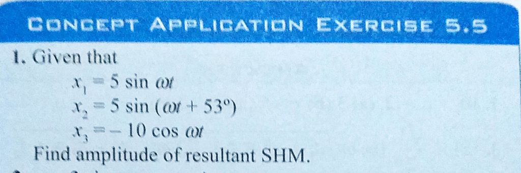 Given that x1 = 5 sin omega t x2 = 5 sin (omega t + 53) x3 = -10 cos omega t Find amplitude of resultant SHM. Given that x1 = 5 sin omega t x2 = 5 sin (omega t + 53) x3 = -10 cos omega t Find amplitude of resultant SHM. October 30, 2020 Category: Uncategorised (JEE Advanced Physics by BM Sharma + GMP Solutions) , Facebook Messenger WhatsApp Share this:TwitterFacebook Related