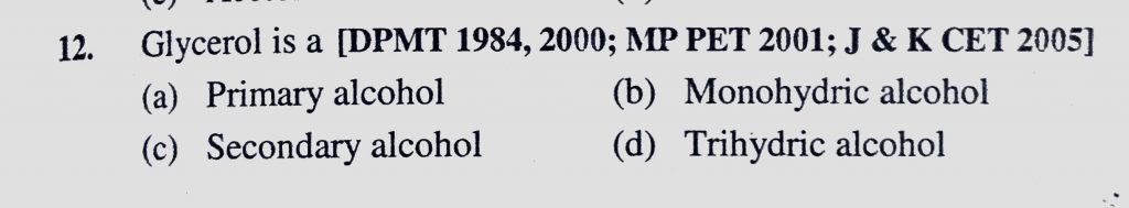 Glycerol is a (a) Primary alcohol (b) Monohydric alcohol (c) Secondary alcohol (d) Trihydric alcohol Glycerol is a (a) Primary alcohol (b) Monohydric alcohol (c) Secondary alcohol (d) Trihydric alcohol February 9, 2021 Category: Uncategorised (JEE Advanced Physics by BM Sharma + GMP Solutions) , Facebook Messenger WhatsApp Share this:TwitterFacebook Related