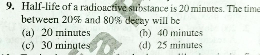 Half life of a radioactive substance is 20 minutes. The time between 20 percent and 80 percent decay will be Half life of a radioactive substance is 20 minutes. The time between 20 percent and 80 percent decay will be September 14, 2020 Category: Uncategorised (JEE Advanced Physics by BM Sharma + GMP Solutions) , Facebook Messenger WhatsApp Share this:TwitterFacebook Related