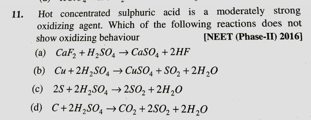 Hot concentrated sulpheric acid is a moderately strong oxidizing agent . Which of the following reactions does not show oxidizing behaviour Hot concentrated sulpheric acid is a moderately strong oxidizing agent . Which of the following reactions does not show oxidizing behaviour November 23, 2020 Category: Uncategorised (JEE Advanced Physics by BM Sharma + GMP Solutions) , Facebook Messenger WhatsApp Share this:TwitterFacebook Related