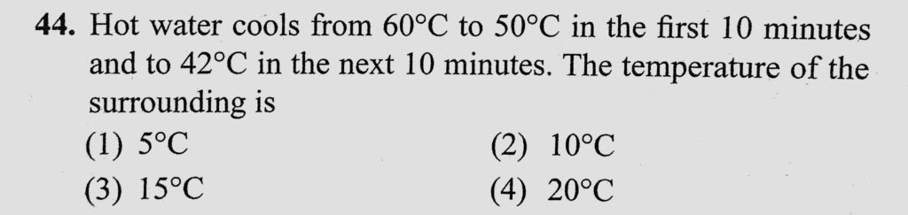 Hot water cools from 60 C to 50 C in the first 10 minutes and to 42 C in the next 10 minutes. The temperature of the surrounding is Hot water cools from 60 C to 50 C in the first 10 minutes and to 42 C in the next 10 minutes. The temperature of the surrounding is October 25, 2020 Category: Uncategorised (JEE Advanced Physics by BM Sharma + GMP Solutions) , Facebook Messenger WhatsApp Share this:TwitterFacebook Related