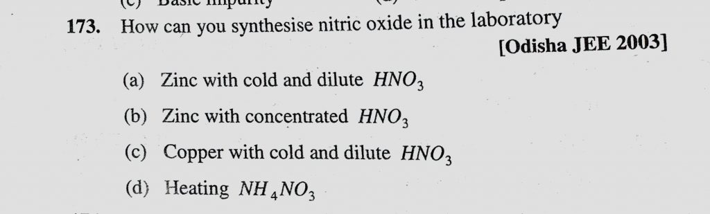 How can you synthesise nitric oxide in the laboratory (a) Zinc with cold and dilute HNO3 (b) Zinc with concentrated HNO3 How can you synthesise nitric oxide in the laboratory (a) Zinc with cold and dilute HNO3 (b) Zinc with concentrated HNO3 November 23, 2020 Category: Uncategorised (JEE Advanced Physics by BM Sharma + GMP Solutions) , Facebook Messenger WhatsApp Share this:TwitterFacebook Related