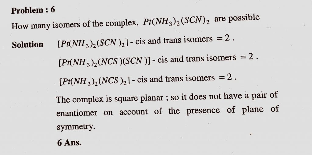 How many isomers of the complex , Pt(NH3)2(SCN)2 are possible How many isomers of the complex Pt(NH3)2(SCN)2 are possible December 6, 2020 Category: Uncategorised (JEE Advanced Physics by BM Sharma + GMP Solutions) , Facebook Messenger WhatsApp Share this:TwitterFacebook Related