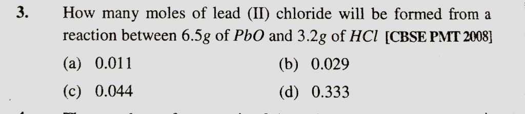 How many moles of lead (II ) chloride will be formed from a reaction between 6.5 g pbO and 3.2 g of HCl How many moles of lead (II ) chloride will be formed from a reaction between 6.5 g pbO and 3.2 g of HCl November 22, 2020 Category: Uncategorised (JEE Advanced Physics by BM Sharma + GMP Solutions) , Facebook Messenger WhatsApp Share this:TwitterFacebook Related